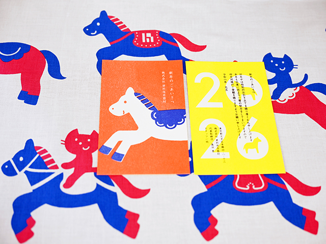 🐎 本年のご挨拶状と手ぬぐいは、「干支午」を題材に、イラストレーターのYuzukoさんにデザインしていただきました。